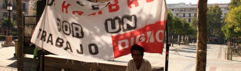 Eran las cuatro de la tarde y Mané Flores seguía sentado, como los últimos cuatro días, frente a la puerta del ayuntamiento en Plaza Nueva.