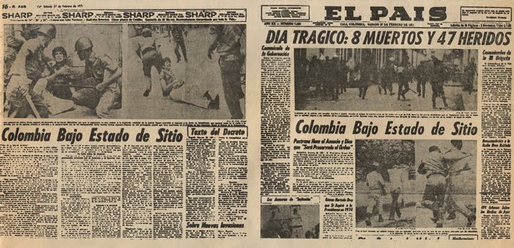 El 7 de febrero comenzó la huelga estudiantil en la Universidad del Valle. Diecinueve días después las protestas fueron duramente reprimidas por el ejército colombiano, dejando un total de 20 muertos en el enfrentamiento. Misael Pastrana declaró de inmediato el Estado de Sitio, implicando controles a la radio, ley seca y medidas de seguridad.