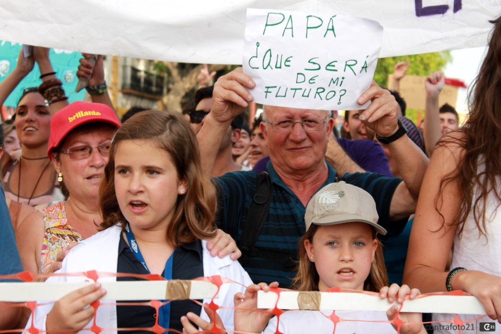 Si el presente de la economía española es crítico, su futuro parece ser aún más sombrío; y eso es lo que actualmente preocupa a los jóvenes. El gobierno español está impulsando medidas para solventar los problemas de hoy, pero está dejando un lastre en la sociedad del mañana, que traerá a largo plazo consecuencias muy negativas como “el envejecimiento de la población, la escasez de mano de obra cualificada, o el retraso general del país”, añade Cecilia Argudo Castellar, activista del movimiento 15M.